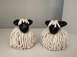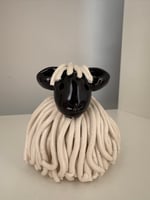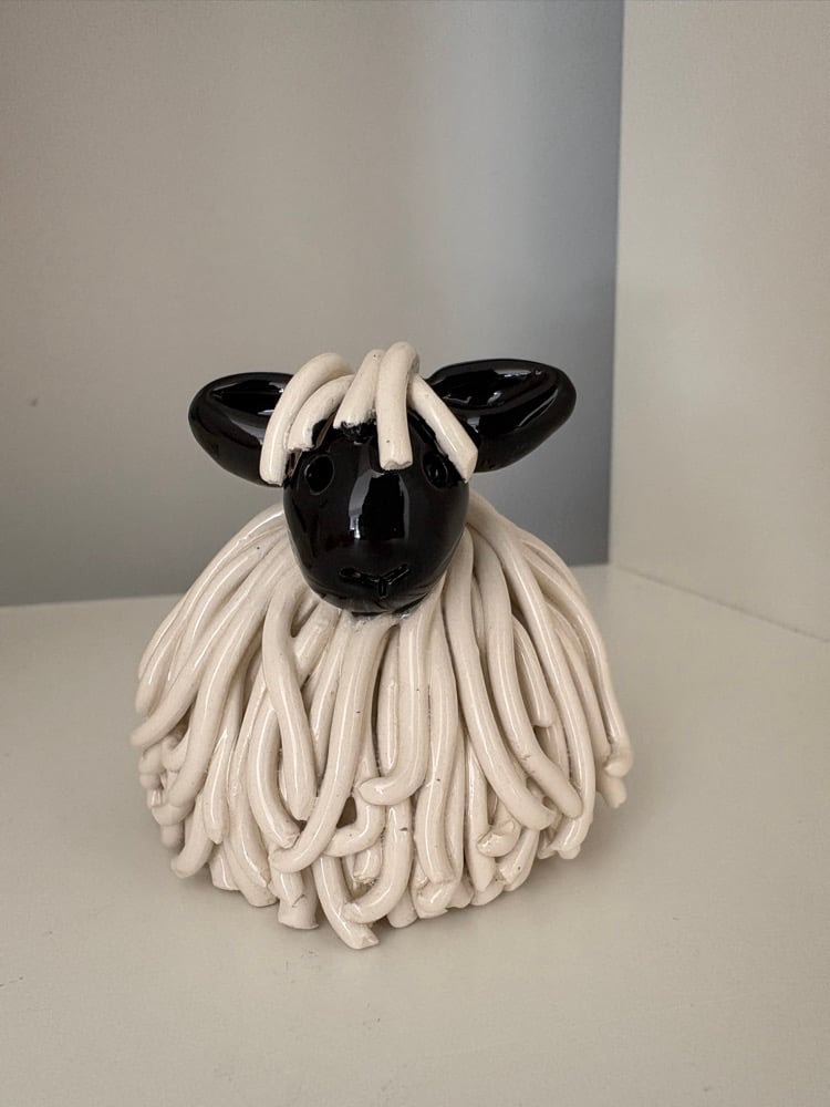 Ceramic sheep. Handmade from earthenware clay, bisque fired, hand glazed and re fired. Approximately 7 x 7cms.