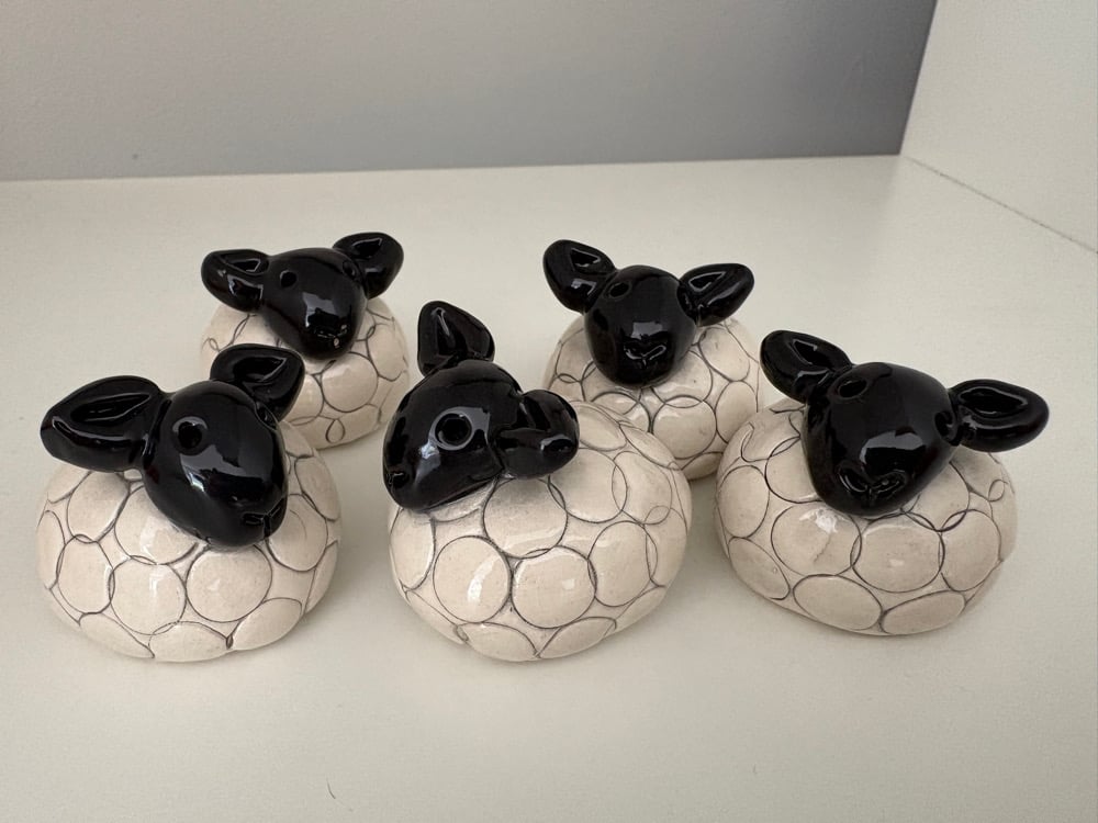 Small Ceramic Sheep. Handmade from white earthenware clay, fired in the kiln, hand glazed and re fired. Approximately 4.5 x 4 cms.